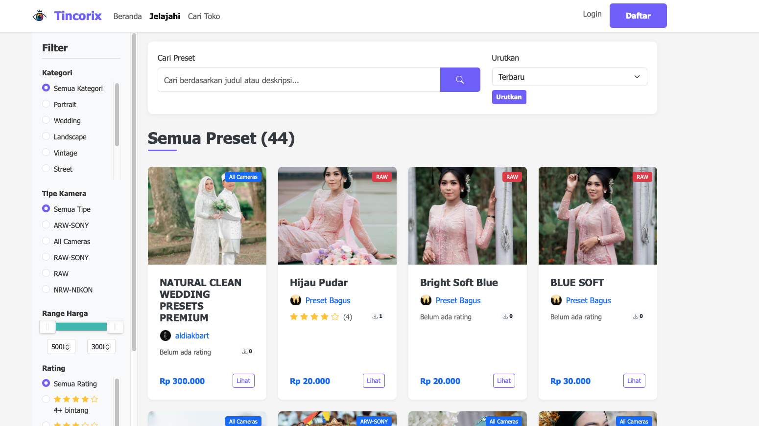 Preset Lightroom Murah & Profesional — Cari Sesuai Kamera Kamu di Tincorix.com